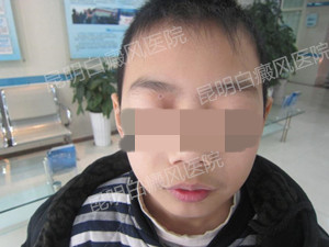 (针对患者病情,医生采用我院特色中西医结合治疗进行治疗,一个疗程时间后,白斑处大量产生黑色素,基底颜色加深,疗效显著)