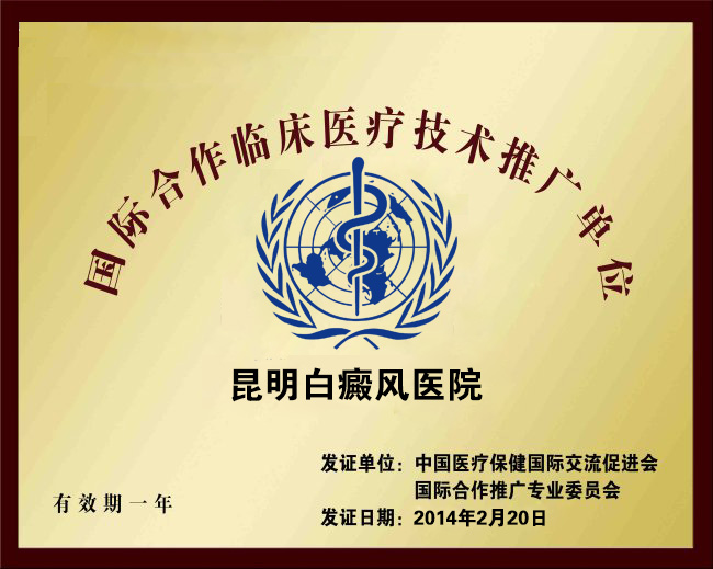 我院自建院以来,一直致力于白癜风疾病的临床科研与诊疗工作,大力拓展与国内外各类科研、诊疗、学术单位的交流与合作。并于2014年2月20日,被中国医疗保健国际交流促进会、国际合作推广专业委员会授予“国际合作临床医疗技术推广单位”。