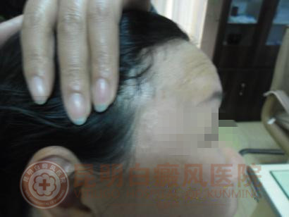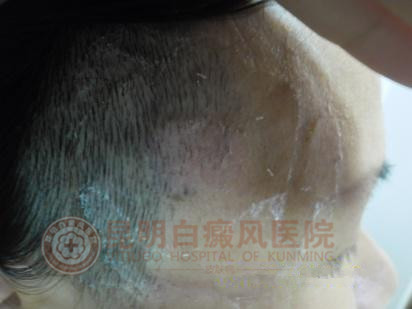 【初次来医院时的前额及勃颈上的白斑】