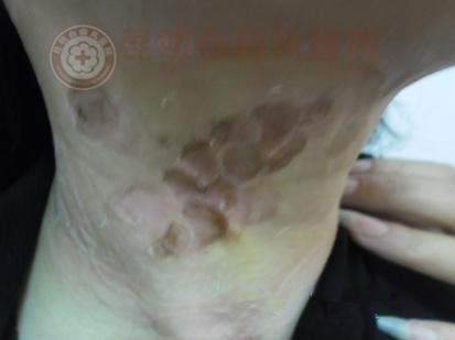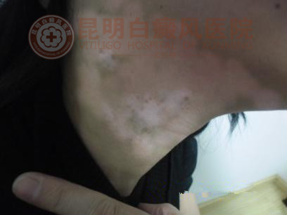 昆明市官渡区大板桥镇女孩被脖颈上大面积白斑苦苦纠缠10年,终得昆明白癜风皮肤病医院成功“解围”!