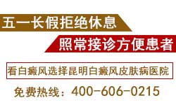 昆明白癜风皮肤病医院医生表示,由于五一节正处于春夏之交的季节,是白癜风疾病的高发期。根据往年的经验,五一节前后来我院就诊的白癜风患者都会增加。所以,昆明白癜风皮肤病医院更是承担着服务于白癜风患者身心健康的重要任务。为此,我院经研究决定:五一小长假期间,所有医生照常接诊,全力为广大白癜风患者的身心健康服务!