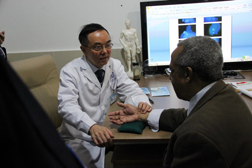 熊万众为加拿大医学博士、著名皮肤病专家巴里·皮特博士展现中医把脉